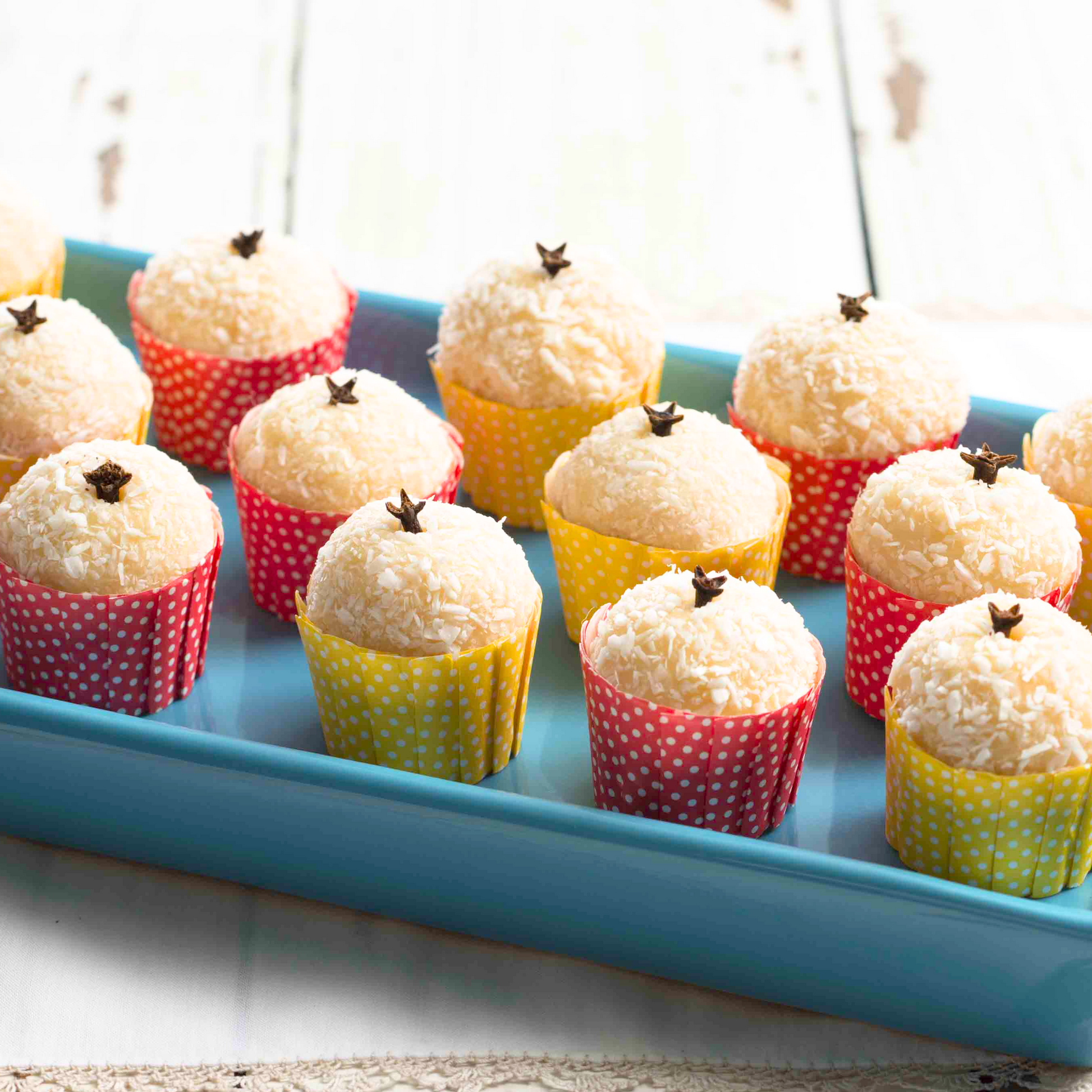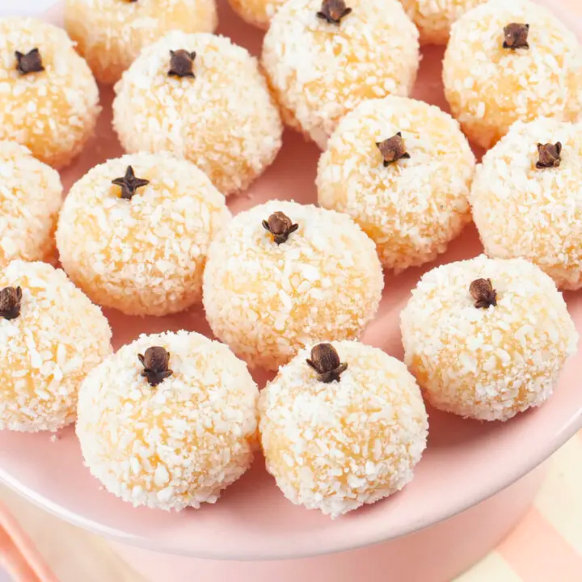 Sweet, soft, and coconutty—Beijinho means “little kiss” in Portuguese, and these creamy coconut bites live up to the name! Each rolled into classic sprinkle-coated balls with a clove on top—cute and traditional!